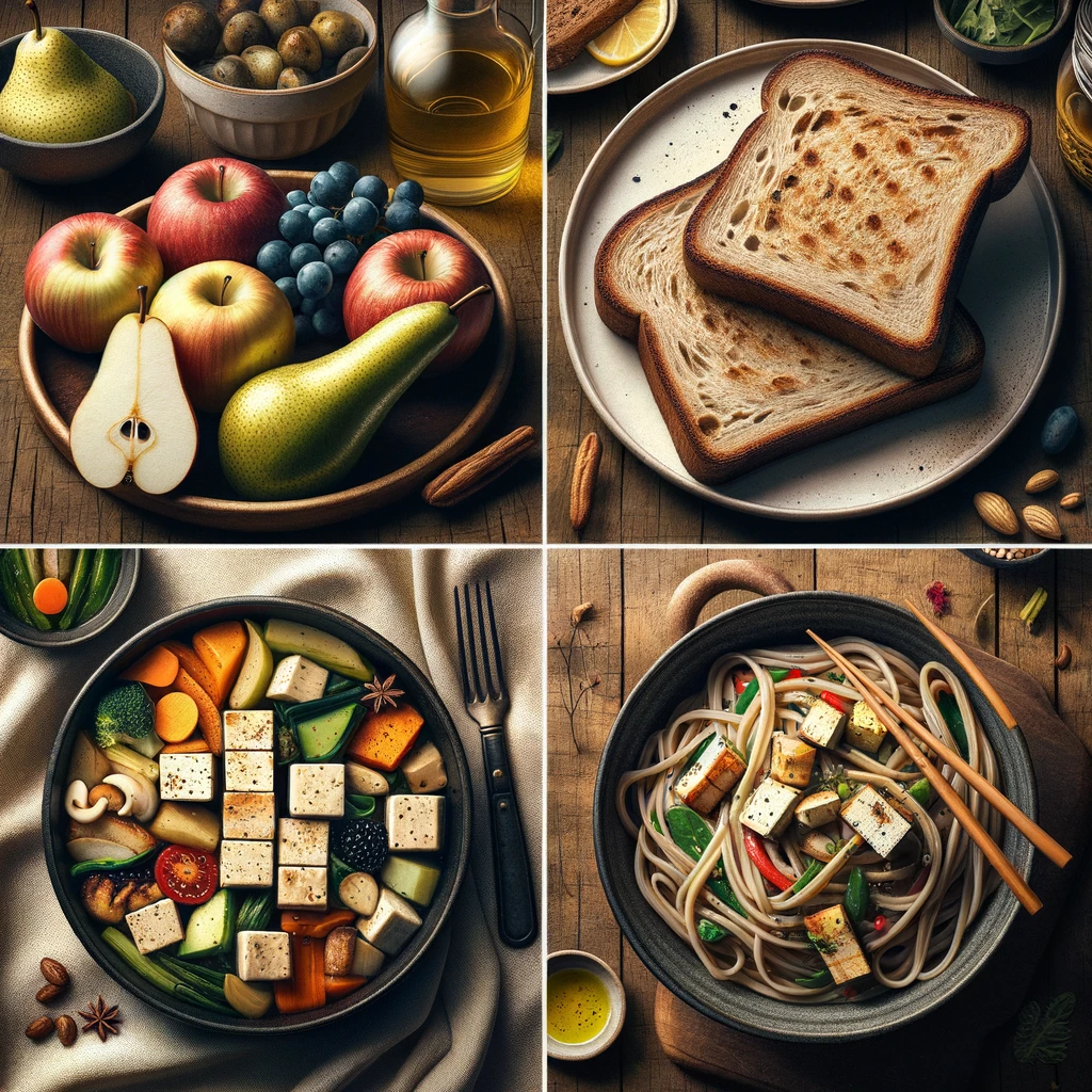 - 저녁-구운 야채와 올리브 오일을 뿌린 통밀빵