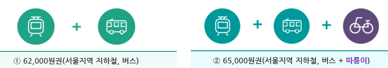 - 이용범위 : 서울지역 지하철, 서울시 면허 시내/마을버스, 따릉이