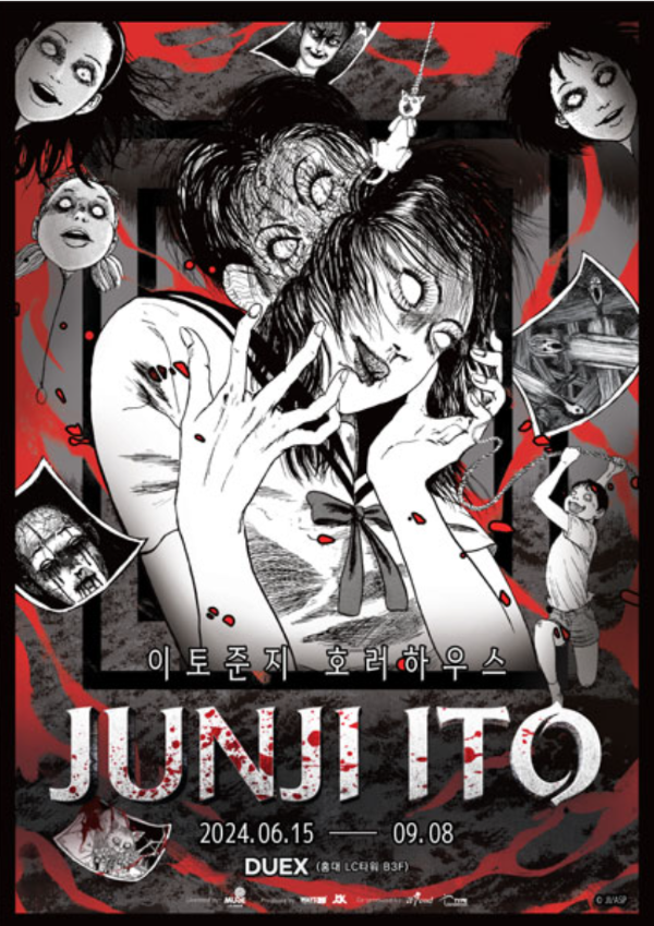 기괴한 공포만화로 유명한 이토준지의 몰입형 체험전시 이토준지 호러하우스가 대만, 태국, 말레이시아를 거쳐 한국에 상륙했습니다. 그냥 보고 감상만 하는 전시가 아니라 살아 움직이는 작품 속 캐릭터들을 체험할 수 있는 전시라고 하는데요. 복수를 테마로 한 복수의 마을 존과 섬뜩한 악마를 만날 수 있는 악의 계곡을 돌아 이토준지가 직접 그린 원고나 애니메이션 초안원고 등 쉽사리 볼 수 없었던 자료등도 만나볼 수 있습니다.