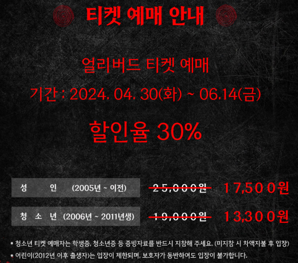 티켓 예매는 예스 24와 네이버를 통해 예매를 하실 수 있는데요. 6월 14일까지 얼리버드 티켓으로 예매하시면 30% 할인된 가격으로 전시를 보실 수 있습니다.