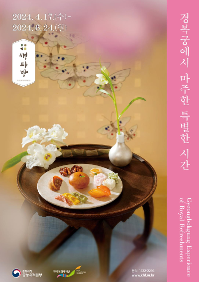 경복궁에서 진행하는 생과방 프로그램은 실제 임금이 드셨던 궁중병과와 궁중 약차를 오늘날에도 체험해 볼 수 있도록 만든 체험 프로그램인데요. 대장금에서나 눈으로 즐길 수 있었던 왕과 왕비의 디저트와 차를 실제로 만나볼 수 있습니다. 이 프로그램이 행사기간 동안에만 한정된 장소에서 한정된 인원만 예약을 받기 때문에 불나는 티켓팅을 통해야 겨우 예약을 해볼 수 있는데요. 이번 상반기 행사 일정이 공개되어 소개해드리려고 해요.