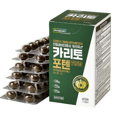 아마 광고로도 많이 접해보셨을 겁니다. 호박씨 성분으로 만들어진 카리토포텐은 비대해진 전립선 축소와 염증완화등에 효과가 있습니다. 임상시험도 2천 명 이상을 대상으로 대규모로 진행되었고 복용 1개월 3개월 차에 증상이 더 개선됨이 확인되었습니다. 12개월 추적조사로 안전성도 확인되었습니다.