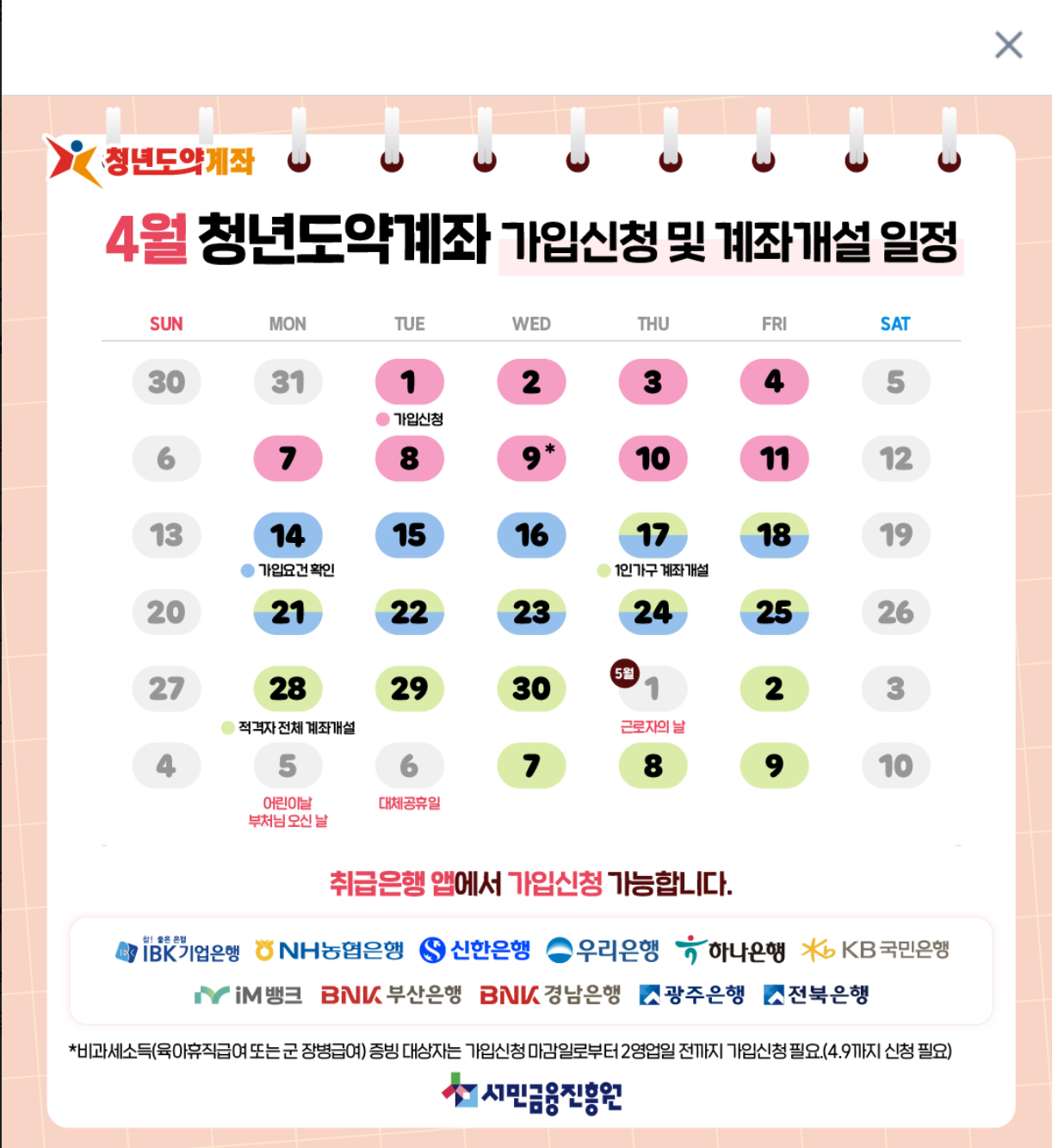 신청 기간은 매월 초에 진행되며, 정확한 일정은 금융위원회나 각 은행의 공지를 통해 확인할 수 있습니다. 신청이 완료되면, 은행에서 소득 심사를 거쳐 계좌 개설 여부를 통보하며, 이 과정은 약 2주 정도 소요됩니다.