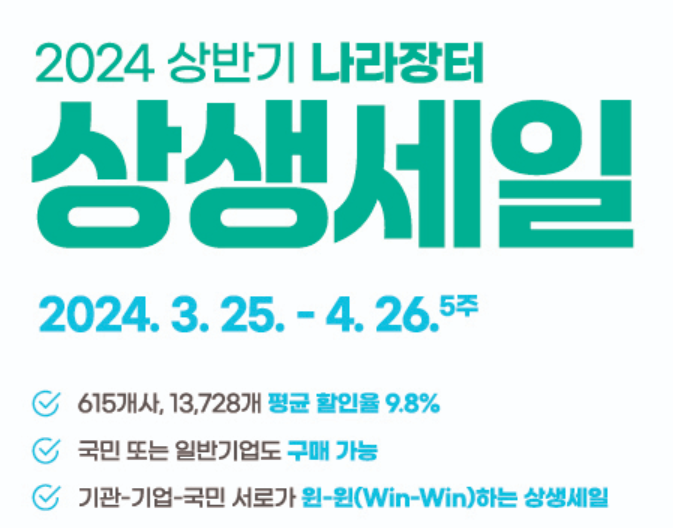 여러분~~ 누구나 좋은 제품을 저렴한 가격으로 살 수 있는 나라장터 상생 세일에 대해 들어보셨나요? 전 처음 듣고 오~이런 좋은걸 왜 몰랐지 싶었답니다. 바로 알려드릴게요~